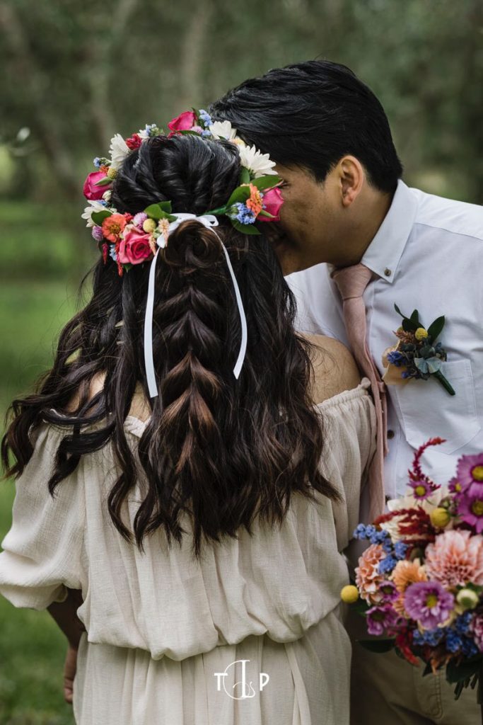 The Bride’s braided hairstyle..getting the finishing touch put in